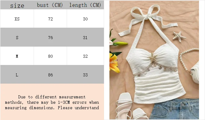 Women's suspender tie, starfish shell decoration, starfish metal button knitted fabric vest, suitable for parties,cropped top