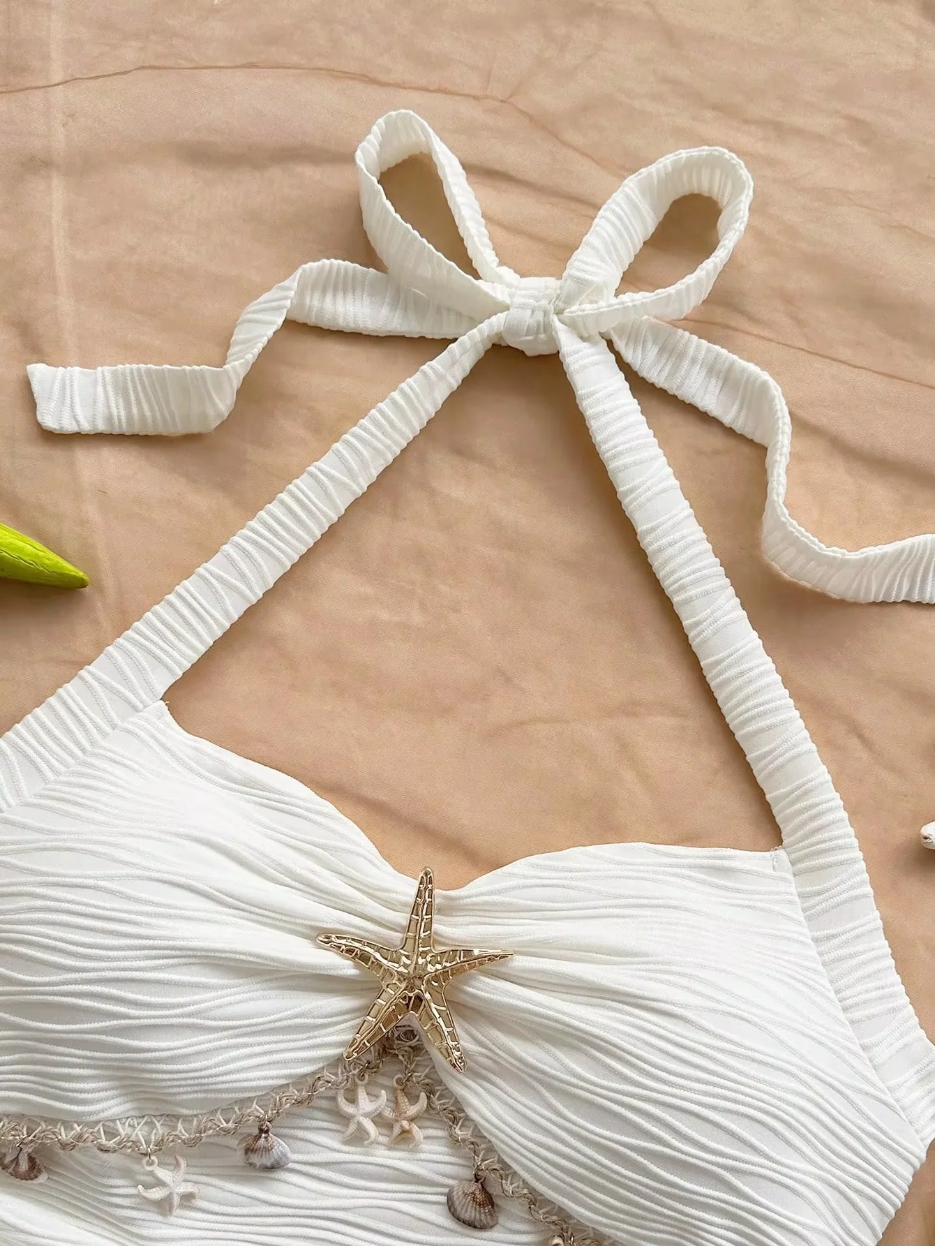 Add a touch of coastal charm to your outfit with the starfish shell decoration, perfect for summer parties.